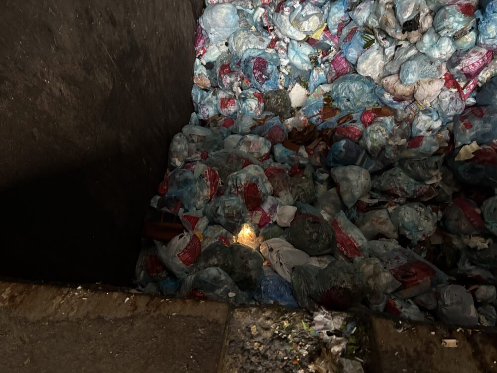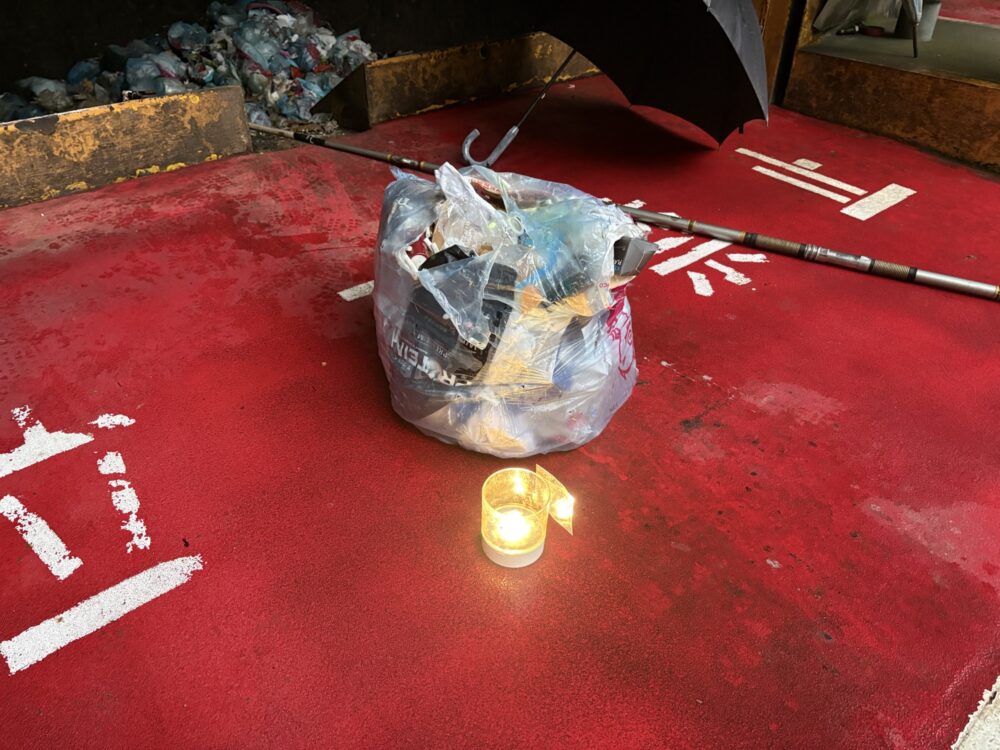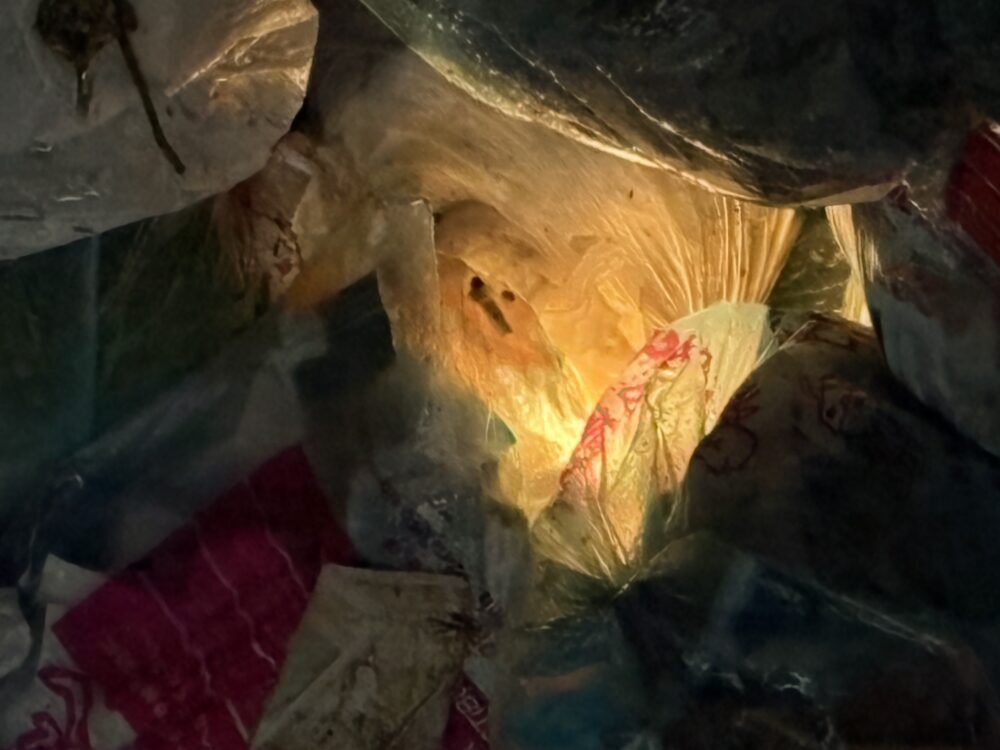薬剤散布の準備をしていると、ゴミ山の中で、一瞬『光』が見えた気がしたのですが、何かの反射かな?と思いその時は気にせず、他の場所を先に作業をしていました。